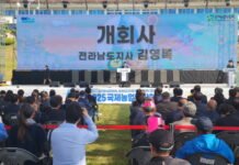 ‘2025 국제농업박람회’가 23일 나주시 산포면 소재 전남도농업기술원에서 성대하게 개막했다.이번 박람회는 오는 29일까지 7일간 ‘농업이 세상을 바꾼다–AI와 함께하는 농업혁신, 생명 키우는 K-농업’을 주제로 열린다.개막식에는 김영록...