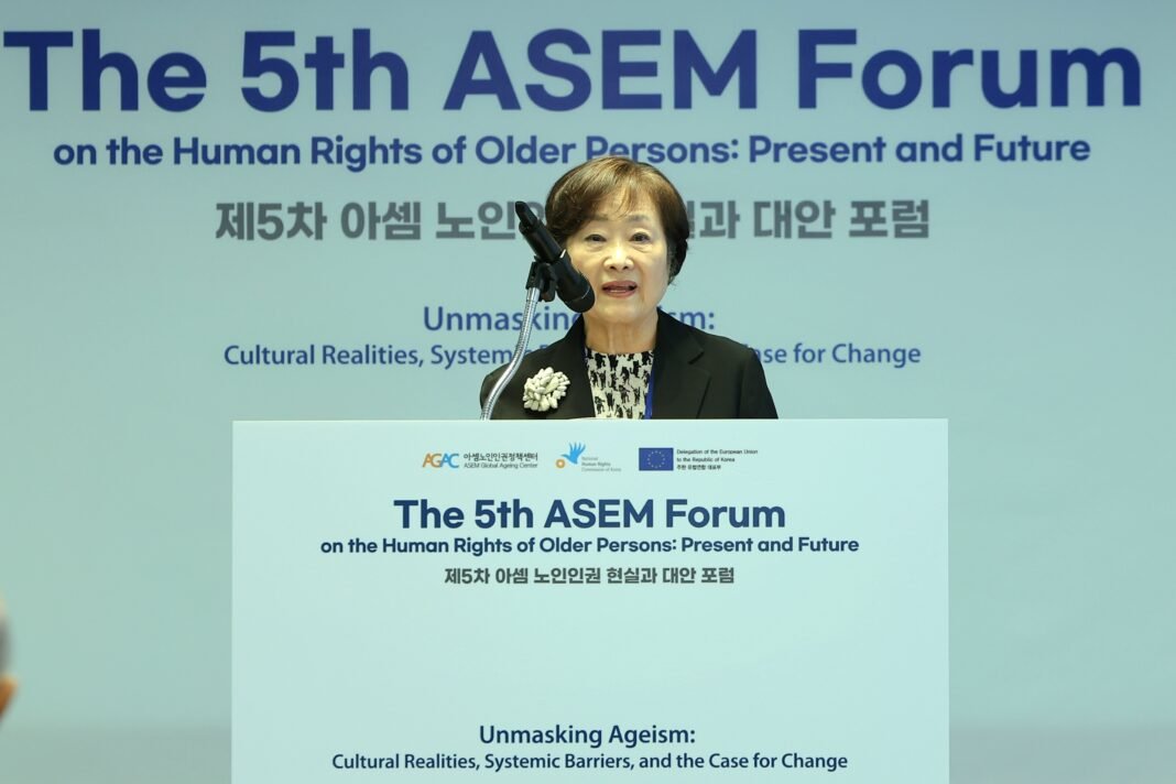 아셈노인인권정책센터(AGAC, ASEM Global Ageing Center, 원장 이혜경)는 8월 20일 국가인권위원회·주한유럽연합대표부와 공동으로 서울 서머셋팰리스에서 ‘연령주의를 조명하다: 문화적 현실, 구조적 장벽, 그리고 변화의 길’을 주제로 ‘제5차 아셈 노인인권: 현실과 대안’ 포럼을 개최했다. 이번 포럼에는 국내외 70여 명이 참여해 연령주의의 발현 양상과 극복 전략을 집중 논의했다.
