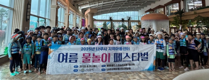 [공동취재=박옥화·우미옥 기자] 나주시(시장 윤병태 )가 지난 12일 중흥골드스파&리조트 워터락에서 지역아동센터 아동들을 위한 ‘2025년 나주시 지역아동센터 여름 물놀이 어울마당’을 개최했다.