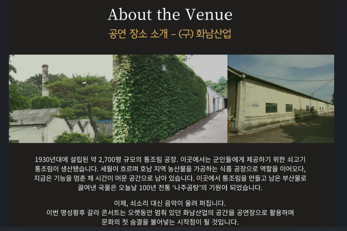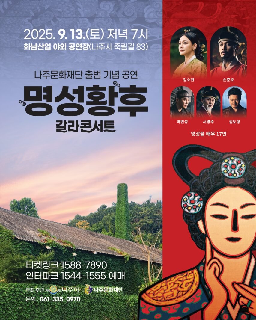 나주문화재단은 “이번 ‘명성황후 갈라 콘서트’는 국내 최정상 배우들이 선사하는 깊이 있는 무대와 웅장한 음악으로 나주 시민과 방문객들에게 잊지 못할 가을 밤을 선물할 것”이라고 밝혔다.