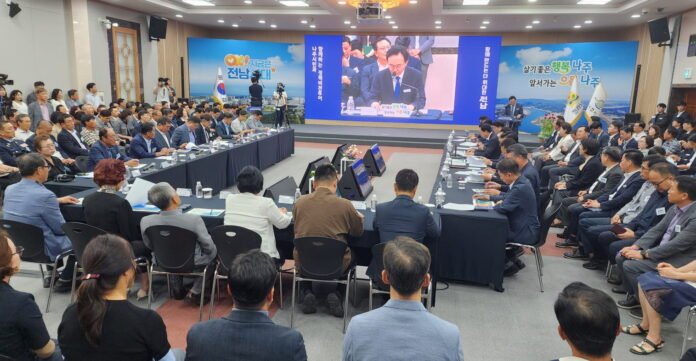 나주시는 2일 시청 대회의실에서 열린 ‘전남 정책비전 투어’를 통해 시민들과 함께 나주의 미래를 그려보는 시간을 가졌다. 이날 행사에는 김영록 전남도지사, 윤병태 나주시장, 이재남 시의회 의장, 이재태·최명수 도의원, 시민·청년·산업계 관계자 등 150여 명이 참석했다.