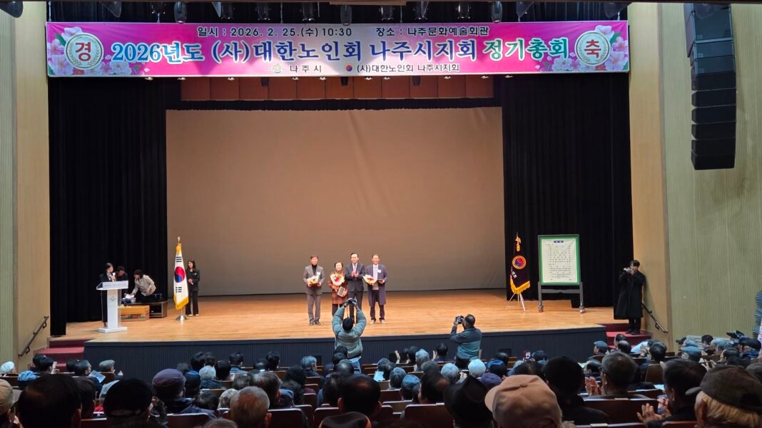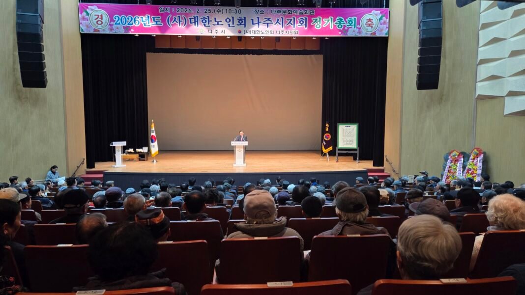 (사)대한노인회 나주시지회(지회장 이상계)는 2월 25일 나주문화예술회관에서 2026년도 정기총회를 개최했다. 이날 총회에는 관내 경로당 회장 등 대의원 650여명이 참석해 지회 운영 방향과 노인복지 증진 방안 등을 논의했다.