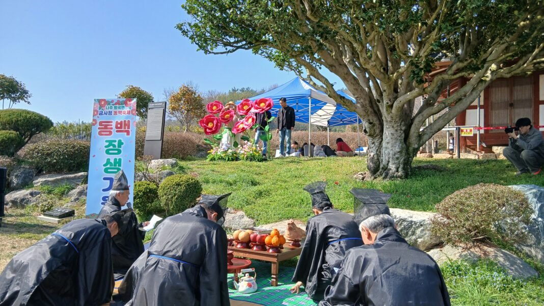 동백나무의 장생을 기원하는 ‘장생기원제’를 지내고 있다. 사진=박옥화