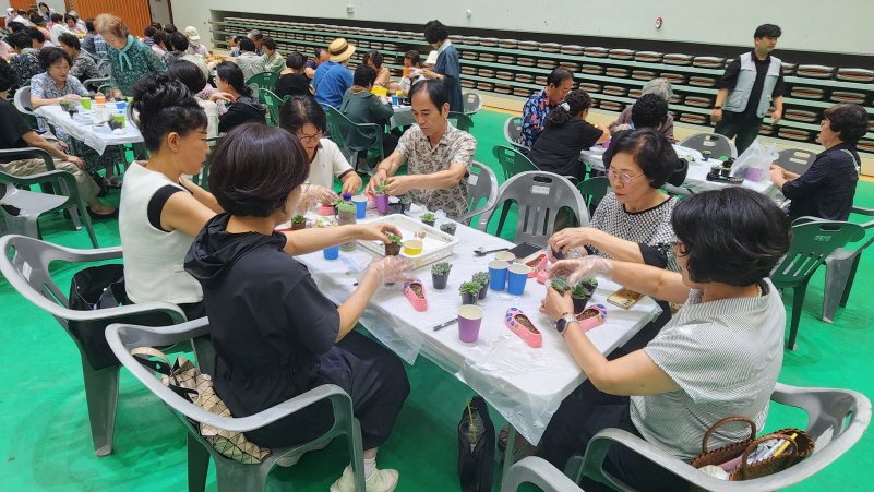 이날 행사는 한국여가문화협회 강사와 함께하는 반려식물 꾸미기 체험으로 진행됐다. 아기자기한 다육식물을 심고 가꾸며 웃음을 나누는 동안 강당 안에는 오랜만에 들뜬 어르신들의 목소리와 웃음소리가 가득했다.