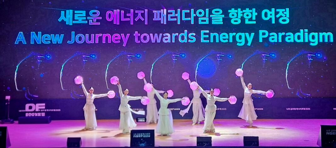 ‘글로벌 에너지포럼 2025’에서 선보인 ‘새로운 에너지 패러다임 여정’ 미디어 퍼포먼스. 사진=김동애