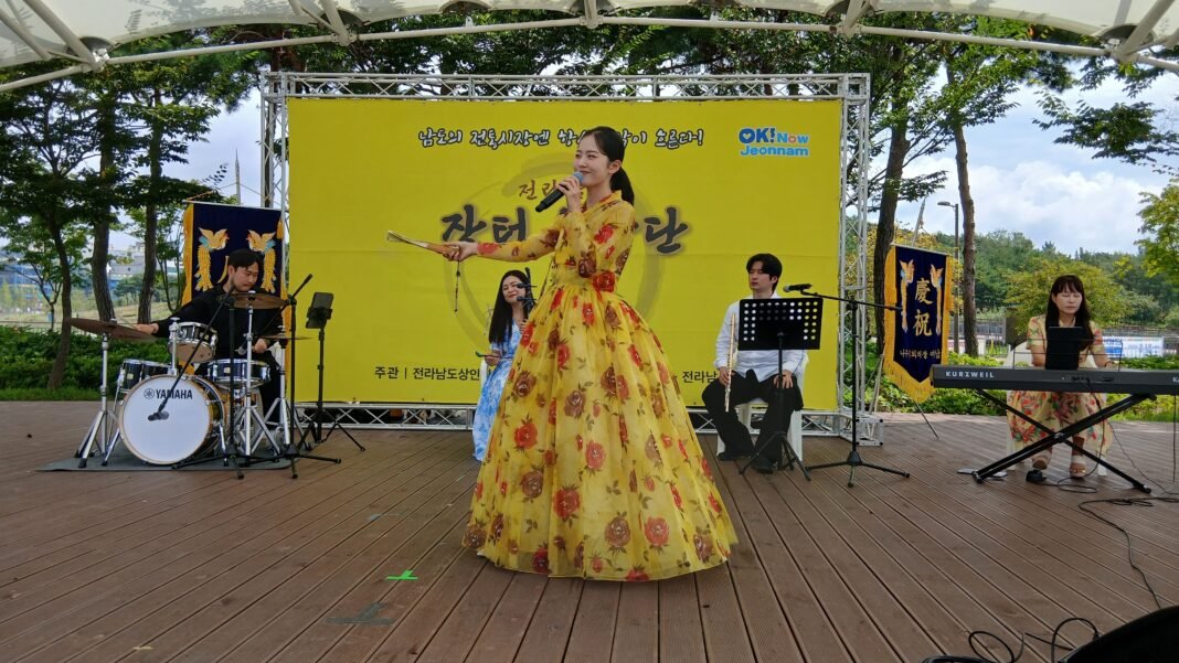 나주시 ‘빛가람 하나로(골목형)상점가 상인회’가 지난 18일 혁신도시 호수공원 야외무대에서 창립 출범식을 열고 ‘장터유랑단’ 특별 공연을 선보였다. 사진=박옥화