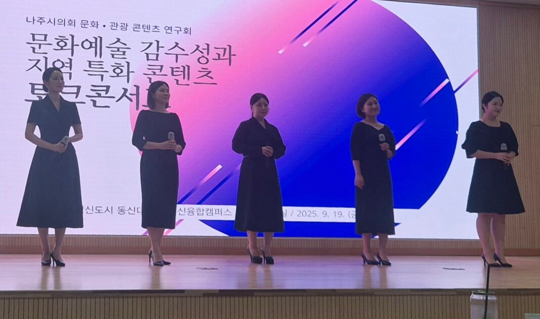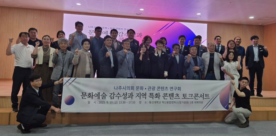 나주시의회 의원연구단체 ‘나주시 문화·관광 콘텐츠 연구회’(대표의원 김철민)는 9월 19일 오후 1시 30분 나주 빛가람동 동신대 한방병원 2층 대회의실에서 ‘나주, 감성으로 잇다’ 문화·관광 콘텐츠 토크콘서트를 열었다.