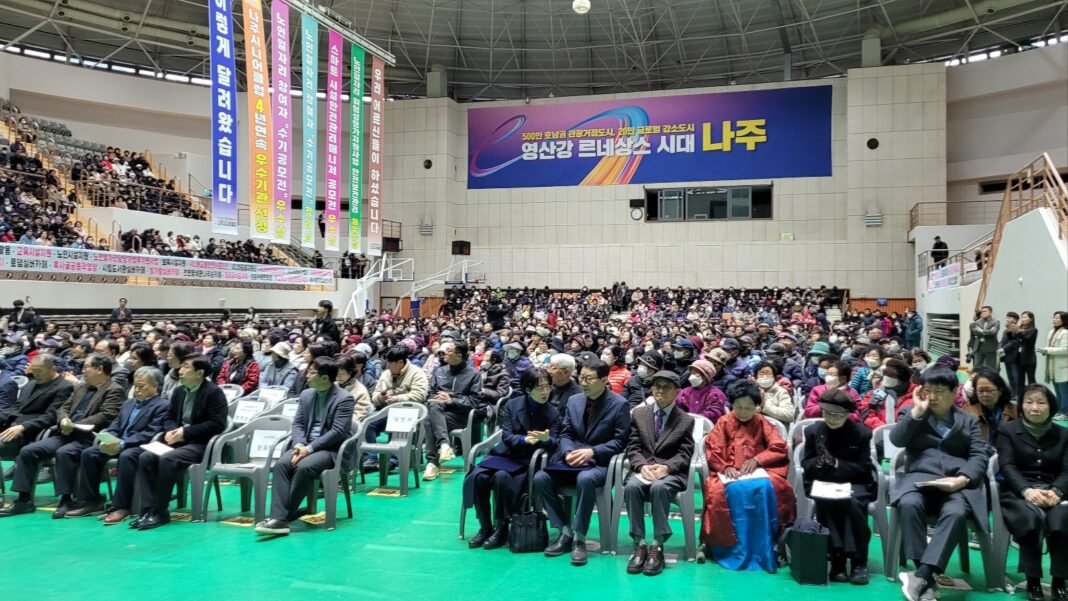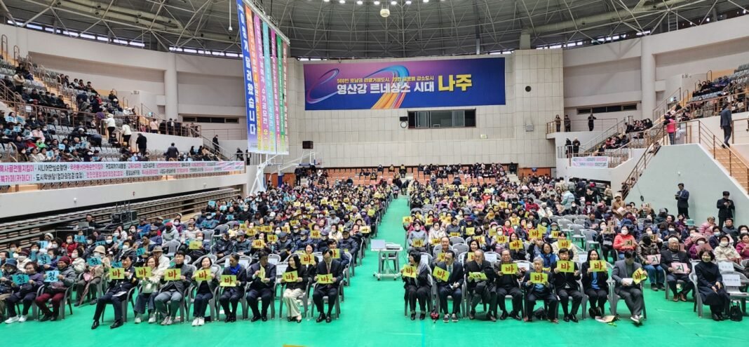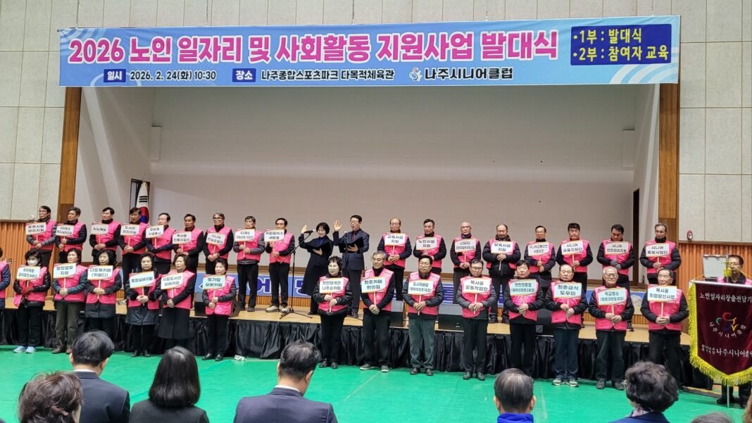 [공동취재=정성균⋅이진문 기자] 나주시니어클럽(관장 김선영)이 2월 24일 나주종합스포츠파크 다목적체육관에서 ‘2026년 노인 일자리 및 사회활동 지원사업 발대식’을 개최하며 힘찬 출발을 알렸다.