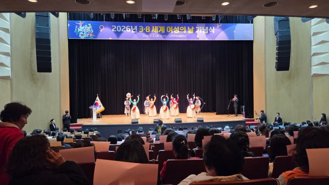 나주시는 ‘세계 여성의 날’을 맞아 여성 단체 회원과 시민, 공직자 등 500여 명이 참석한 가운데 나주문화예술회관에서 기념행사를 성황리에 개최했다. 나주시립국악단의 진도북 공연으로 문을 연 이번 행사는 여성의 권익 증진과 양성평등 문화 확산을 위해 마련되었으며, 지역 사회 발전에 헌신한 유공자 6명에 대한 표창도 함께 진행되어 의미를 더했다.
