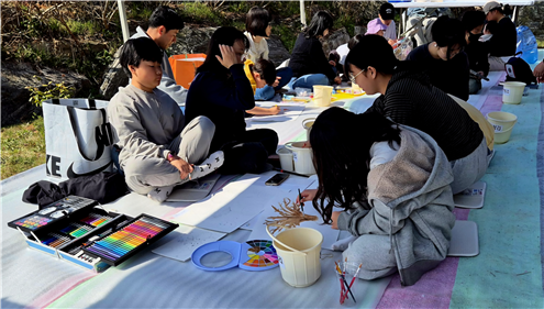 어린이들이 금사정 동백나무의 선비 정신을 마음에 새기며 사생대회에 참가해 저마다의 그림을 완성해 가고 있다. 사진=김동애