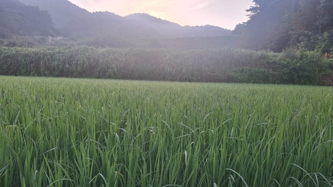 걸음을 멈춘 곳은 모내기부터 우렁이 넣기, 김매기까지 온 정성을 쏟아부었던 논둑길이었다. 짙푸른 물결이 일렁이는 논 위로 아침 안개가 피어오르고, 벼잎마다 맺힌 이슬방울들이 자연만이 빚어낼 수 있는 작품이 되어 있었다.