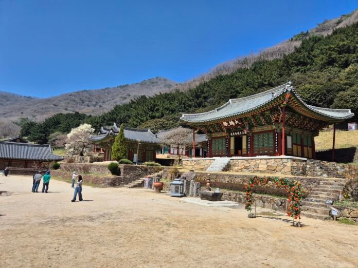 일주문을 막 지나면 진여문이 스쳐간다. 대웅전을 바라보며 경내에 들어서자 대양루가 버티고 있다. 이 곳은 불사를 논의하고 학습하는 공간이라고 한다. 이어지는 계단을 올라서면 대웅전이 웅장하다.